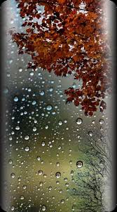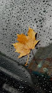 The wallpaper conveys a mood of tranquil contemplation, coziness, and nostalgia, often evoking the feeling of being safe indoors while watching the world’s shift outside during a quiet autumn rain. It serves as an instant mood-setter, providing a visual respite that is both serene and intensely colorful, with the rich tones of the leaf providing a warm pop against the cool, muted grays and browns of the rainy backdrop. Beyond its aesthetic function, the image is a simple, yet profound, celebration of nature’s beauty and the small moments of quiet drama found in everyday weather, making it a compelling and frequently chosen theme for personalizing modern smartphones.