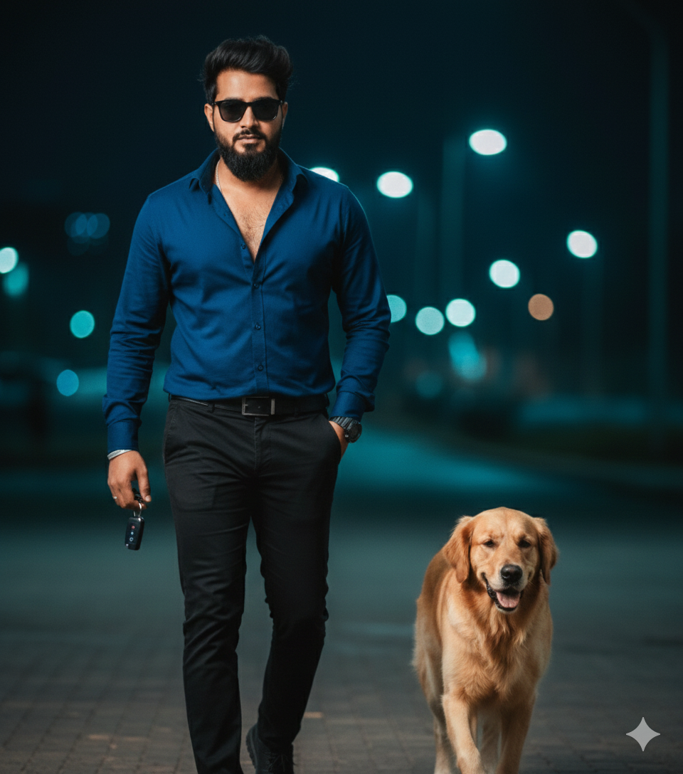 Utilise my image, a wide-angle image of a fashionable individual dressed in a black hoodie and dark denim, lounging effortlessly in the back compartment of a sleek black sports vehicle. He has on dark shades and timeless black and white footwear. The environment is a city street during dusk, with blurred lights from skyscrapers and vehicles providing a lively background. Completely utilise my provided reference picture to create an image.
