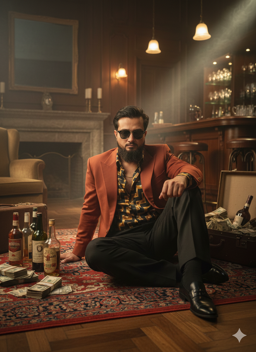 A fashionable young man casually positioned outside, resting against a weathered wooden fence, has the same characteristics in his face, hairstyle, and beard as shown in the reference, which indicates that “his haircut and beard style are the same, and his face looks exactly alike. “” In 8K resolution. Dressed in a neat white collared shirt, dark jeans, and white athletic shoes. Sporting sunglasses, he exudes a relaxed and self-assured aura. The scene is illuminated by gentle natural light, featuring a vibrant green backdrop filled with trees and plants, and captured with a cinematic shallow depth of field through high-quality DSLR photography. Use the same facial image uploaded.